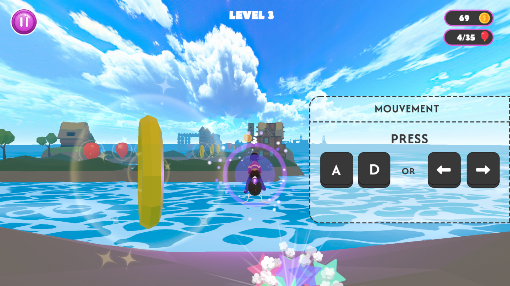 - Six Levels: Each level introduces new challenges with obstacles, enemies, and balloon-collection goals.